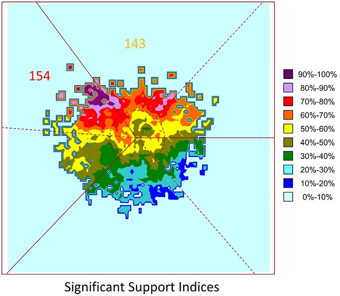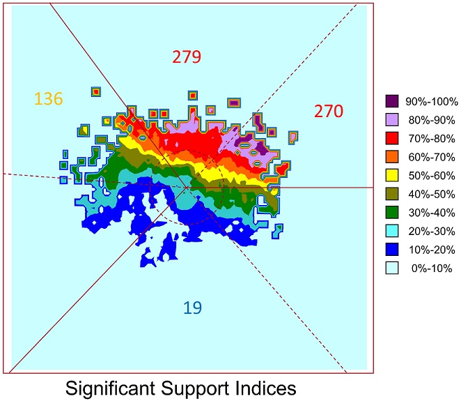 The Contour Map provides a deeper insight for analysts and decision makers and illustrates on which of the 108