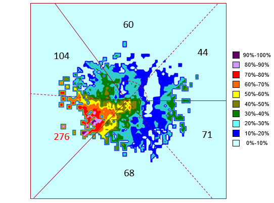 The corresponding map of registered voters provides very little insight because it is so "flat". This means that registered voters have values very similar to the population as a whole (something that some critics of elections with low turnouts might dispute). All Maslow Groups and Values Modes register to vote, which is good news for democracy.